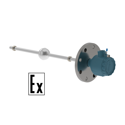 Поплавок с постоянным магнитом перемещается вместе с уровнем жидкости по штоку, в котором находится матрица герконов и сопротивлений. Под воздействием магнитного поля происходит срабатывание герконов, цепь работает по схеме трёхпроводного потенциометра. При изменении уровня жидкости изменяется выходное сопротивление датчика, преобразуемое в выходной сигнал 4…20 мА, что прямо пропорционально уровню жидкости