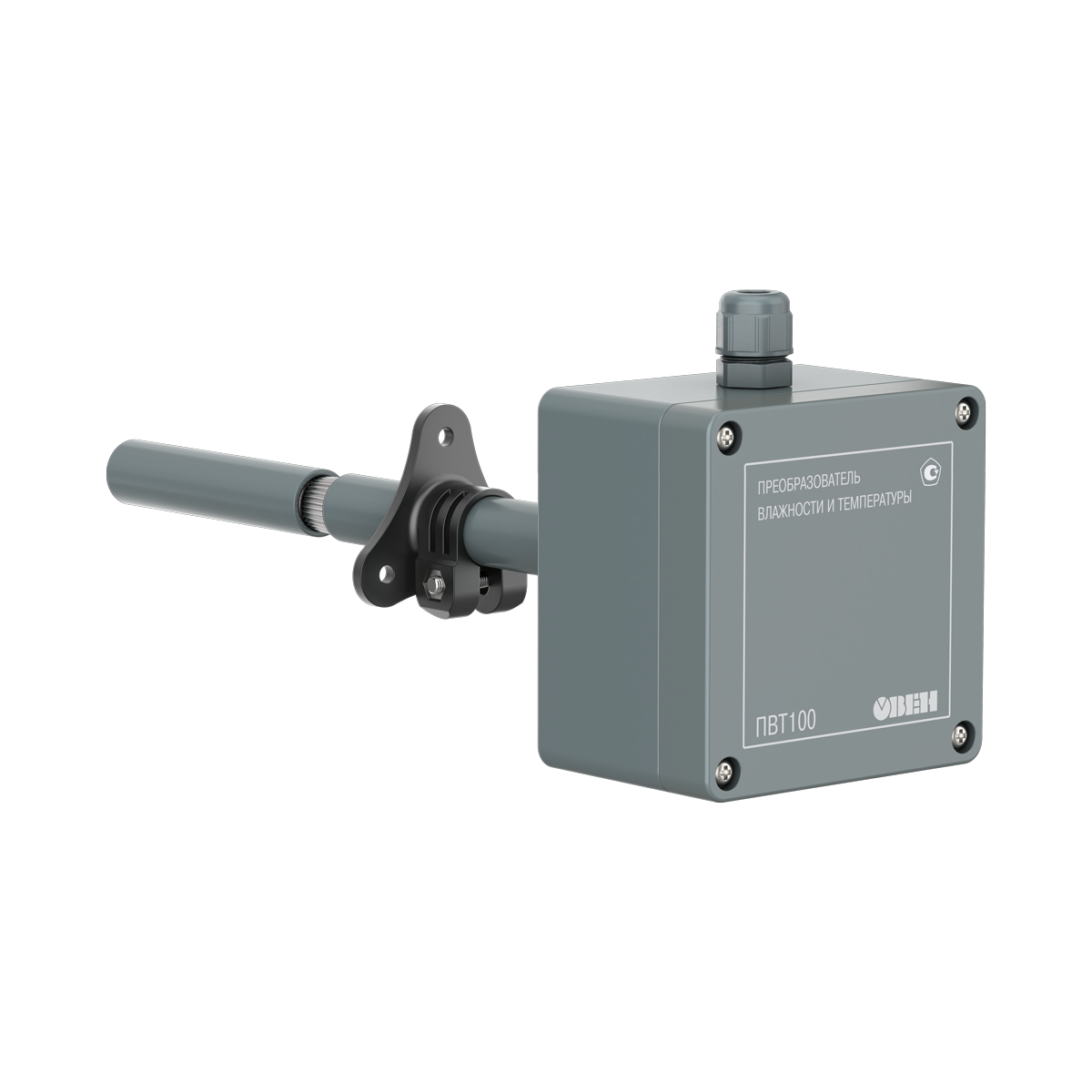 Модификация ПВТ100-К устанавливается в воздухопровод. Зонд помещается в измеряемую среду, а база датчика остается снаружи. Такой датчик может использоваться как в бытовой, так и в промышленной системе вентиляции и измеряет температуру от -40…+80 ⁰С и относительную влажность от 0...100 %RH. В комплект поставки канального датчика ПВТ100-К входит трехточечный фиксатор. Для задач, в которых помимо аналогового 4…20 мА и цифрового выходного сигнала требуется выходной сигнал напряжение 0…10 В, рекомендуется использовать канальный датчик влажности и температуры .