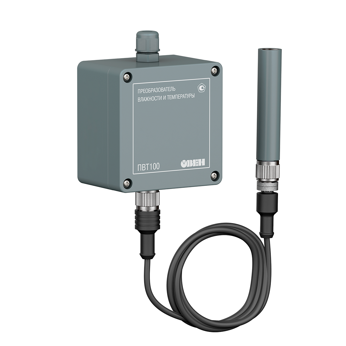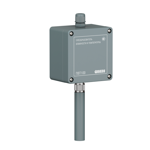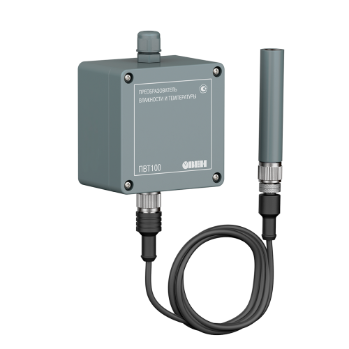Промышленный датчик влажности и температуры ОВЕН ПВТ100 предназначен для непрерывного преобразования относительной влажности и температуры неагрессивного газа в два унифицированных выходных сигнала: аналоговый 4…20 мА и цифровой Modbus RTU по интерфейсу RS-485.
