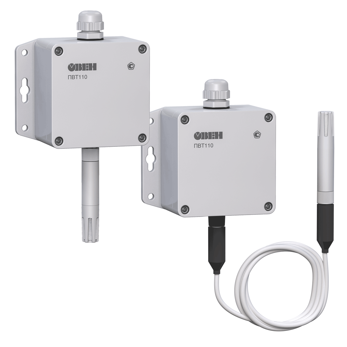Промышленный датчик влажности и температуры ОВЕН ПВТ110 предназначен для непрерывного измерения относительной влажности (ОВ) и температуры воздуха или неагрессивного газа и преобразования измеренных значений в зависимости от модели прибора в: