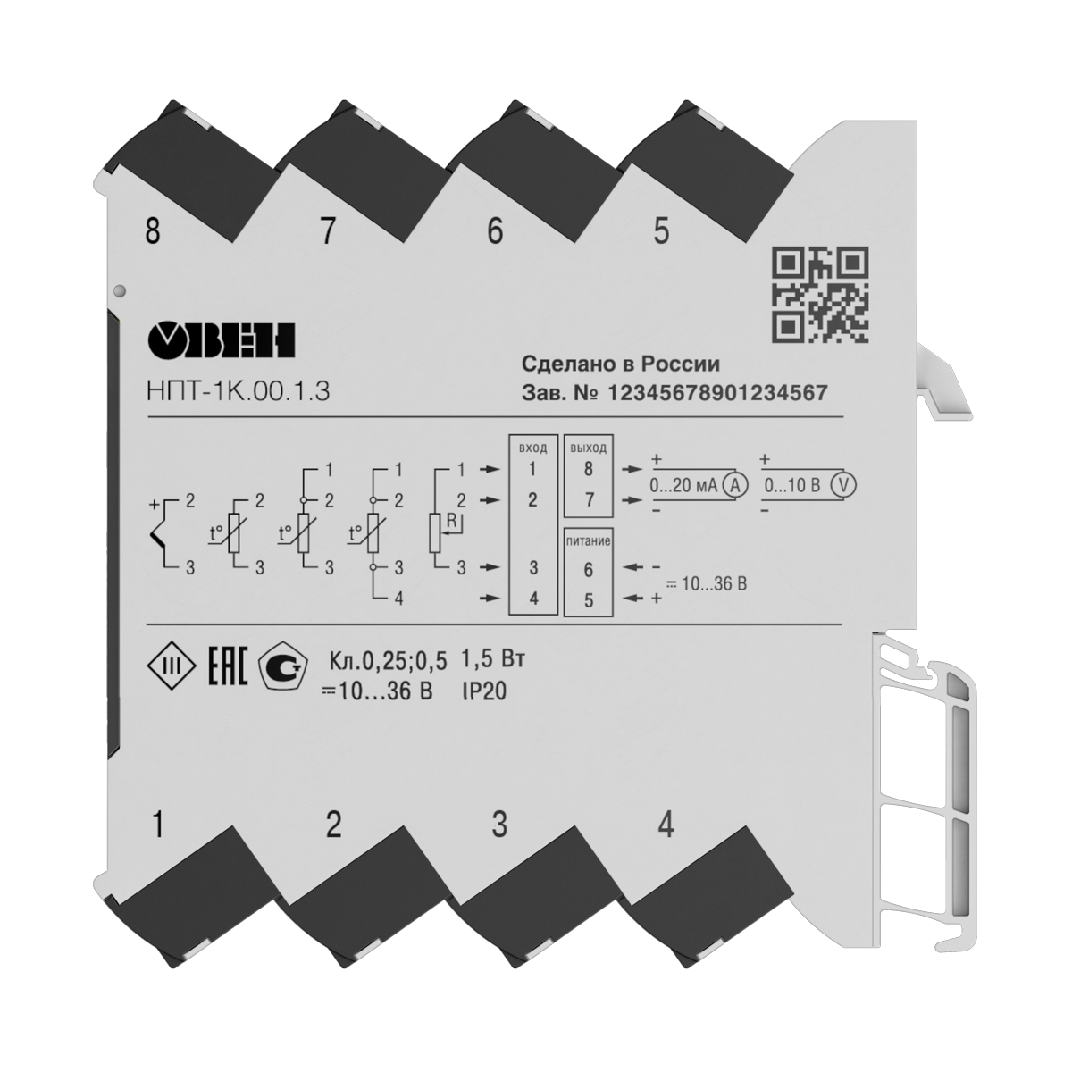 Преобразователь легко интегрируется в системы промышленной автоматизации. Благодаря компактному корпусу НПТ-1К занимает минимум места на дин-рейке - всего 6,1 мм.