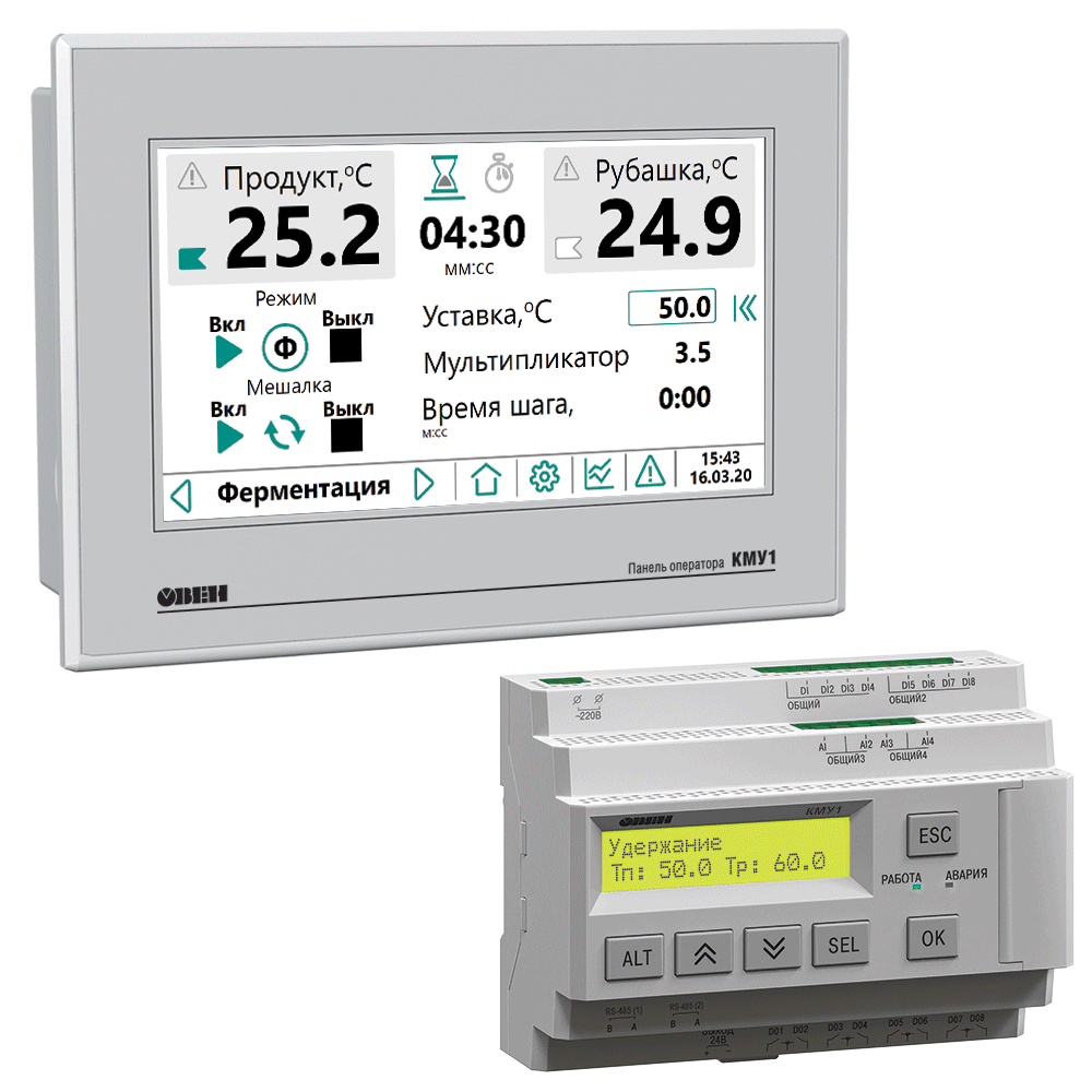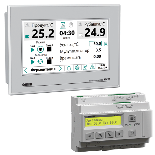 КМУ1 – это набор автоматики, состоящий из контроллера и сенсорной панели оператора. Контроллер оснащен специализированным программным обеспечением, а панель оператора имеет визуализацию, подготовленную для работы с технологическим процессом пищевого производства. Оборудование применяется для автоматизации процессов пастеризации молока, вина, соков в ваннах длительной пастеризации (ВДП) от 30 до 400 литров, а также для управления сырными ваннами с электрическим нагревом.
