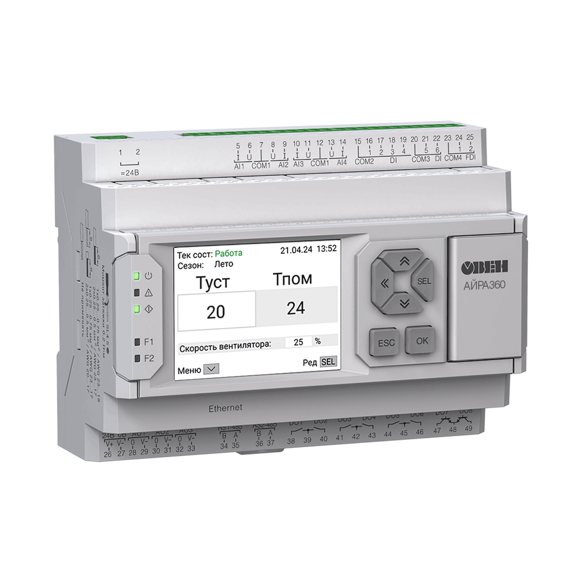 АЙРА360 – современный конфигурируемый контроллер с питанием 24 В для управления приточными и приточно-вытяжными вентиляционными установками любого типа.