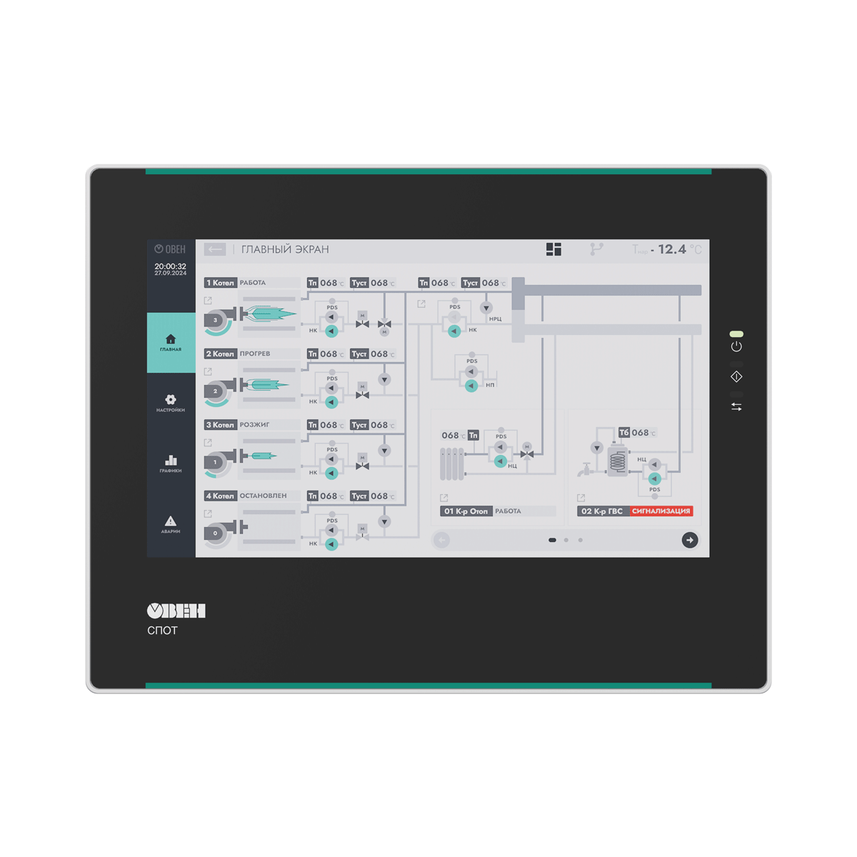 СПОТ – специализированная панель оператора, разработанная для работы с контроллером КТР-121. Панель поставляется с готовым интерфейсом, поэтому не требует программирования и разработки дизайна.