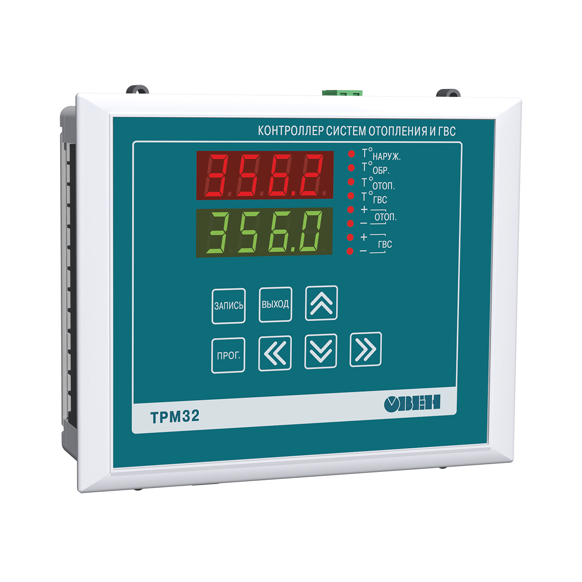 ОВЕН ТРМ32 – контроллер с готовым алгоритмом регулирования температуры в системах отопления и ГВС. Предназначен для применения в индивидуальных и центральных тепловых пунктах (ИТП и ЦТП) и котельных. Регулятор отопления и ГВС поддерживает температуру по заданной уставке или отопительному графику, управляя запорно-регулирующим клапаном (КЗР).