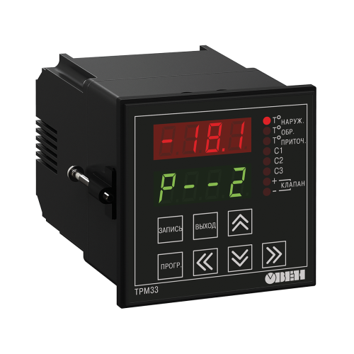 Прибор ОВЕН ТРМ33 предназначен для регулирования температуры воздуха в помещениях, оборудованных системой приточной вентиляции с водяным калорифером.