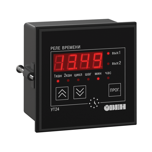 Универсальное двухканальное реле времени УТ24 предназначено для включения и выключения нагрузки по заданной оператором программе. Применяется в качестве таймера, устройства задержки включения или формирователя последовательности импульсов, длительность которых задается пользователем.