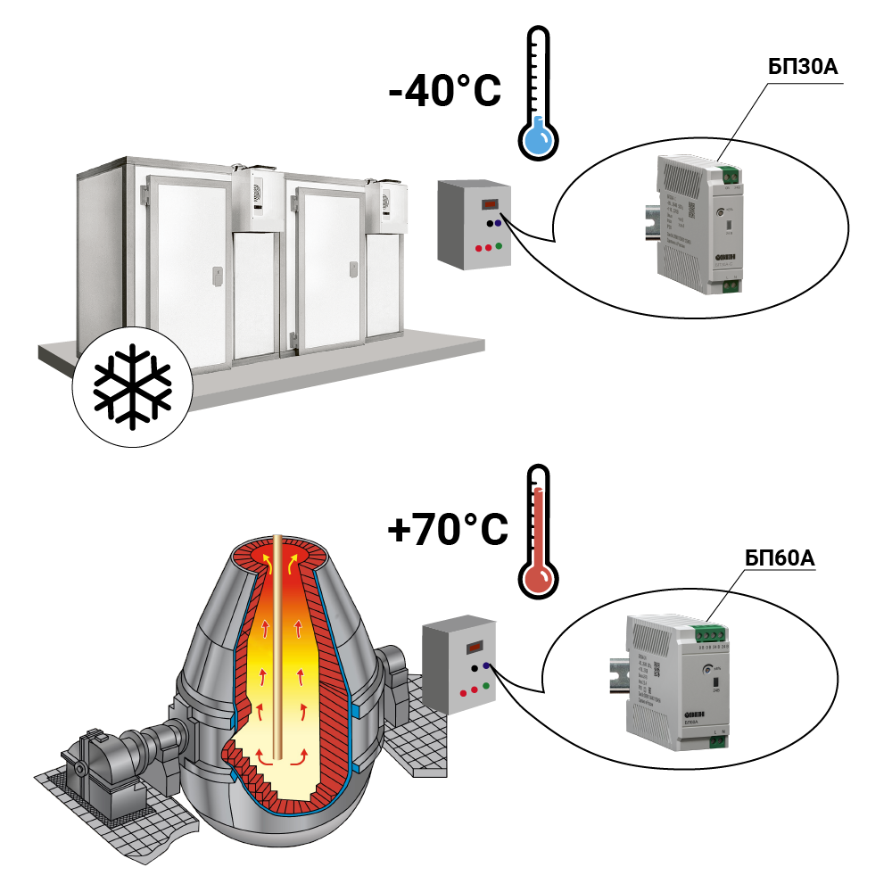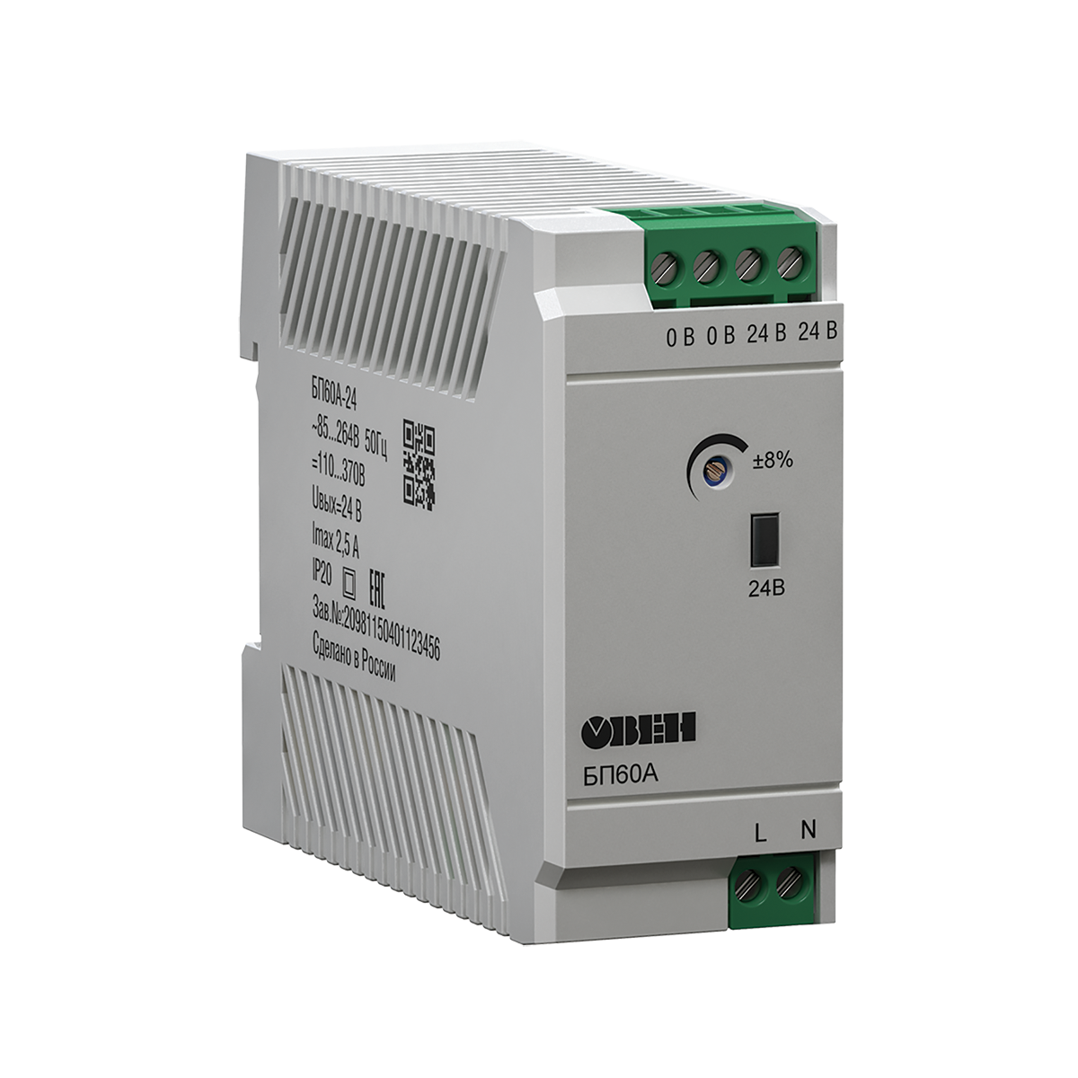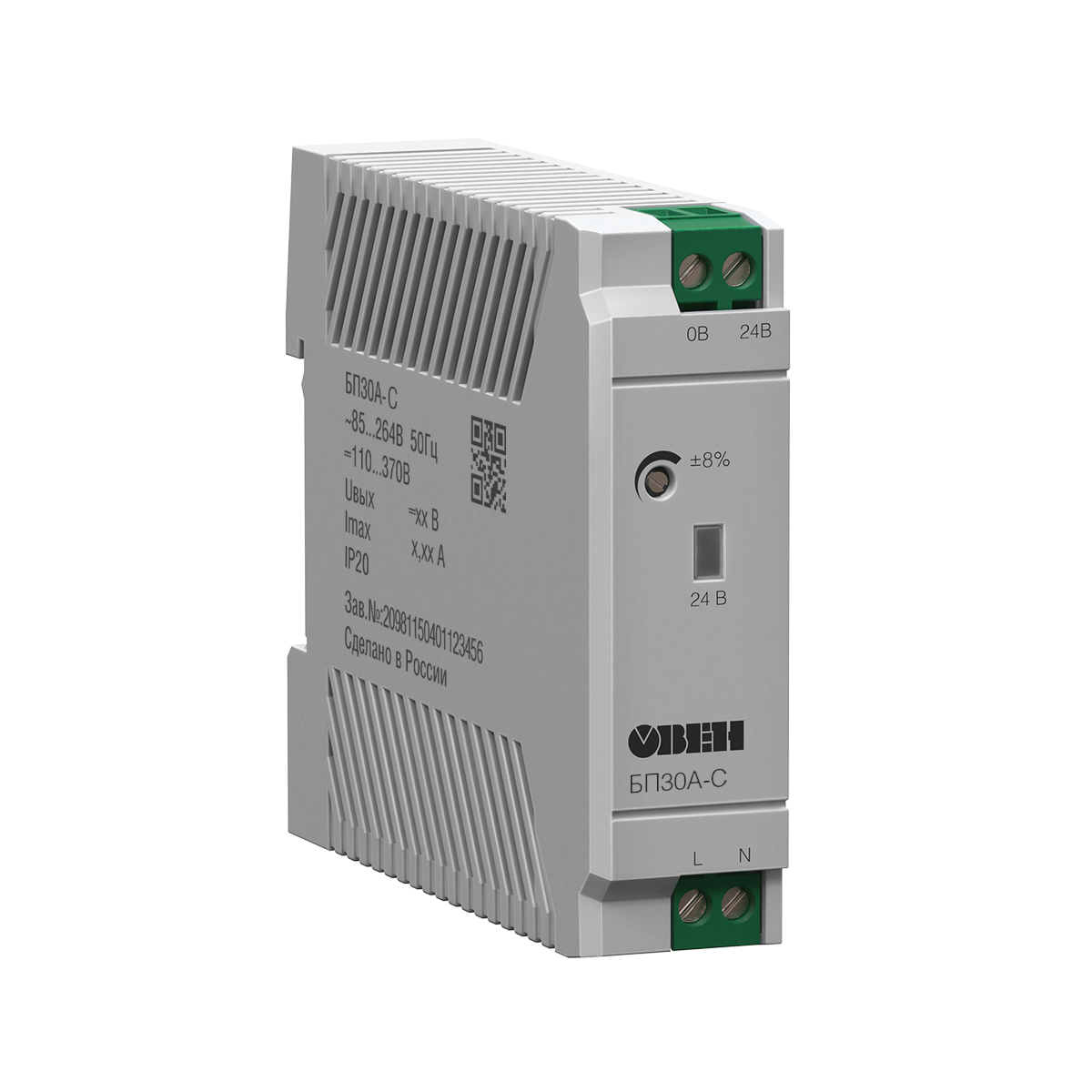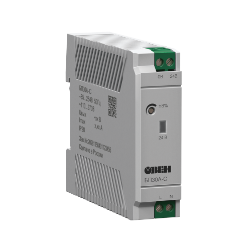 Блоки питания ОВЕН БП30А, БП30А-С, БП60А и БП60А-С предназначены для питания стабилизированным напряжением 12 или 24 В приборов и датчиков. Рекомендуются к применению в шкафах автоматики, где требуется компактное по ширине решение: ширина корпуса БП30А, БП30А-С – 22 мм, БП60А, БП60А-С – 35 мм.