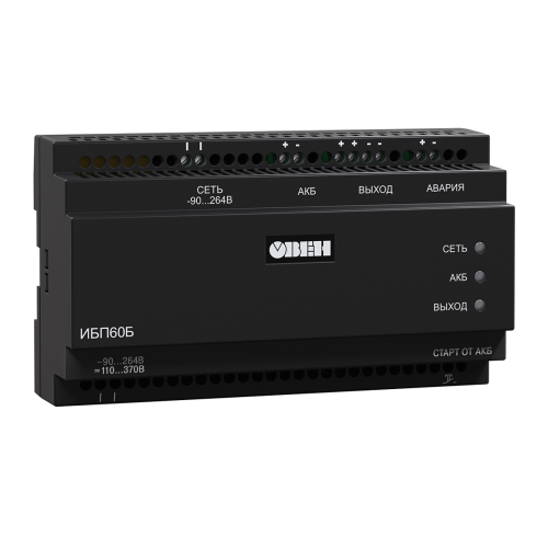 ИБП60Б представляет собой источник вторичного электропитания с резервированием и обеспечивает подключенные к его выходу устройства бесперебойным электропитанием от сети (при ее наличии) и от внешней батареи (при отсутствии сети).