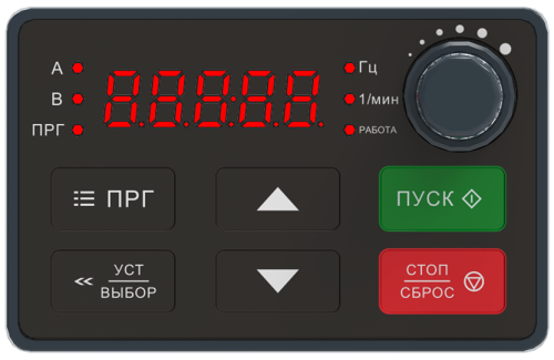 Выносная однострочная панель оператора ЛПО1 [M01] имеет щитовой тип корпуса размером 66×42 мм и служит для дистанционного управления и конфигурирования преобразователя частоты. Подключается к линейкам преобразователей ПЧВ1 [M01] и ПЧВ3 [M01] с помощью прямого патч-корда длиной не более 30 метров.