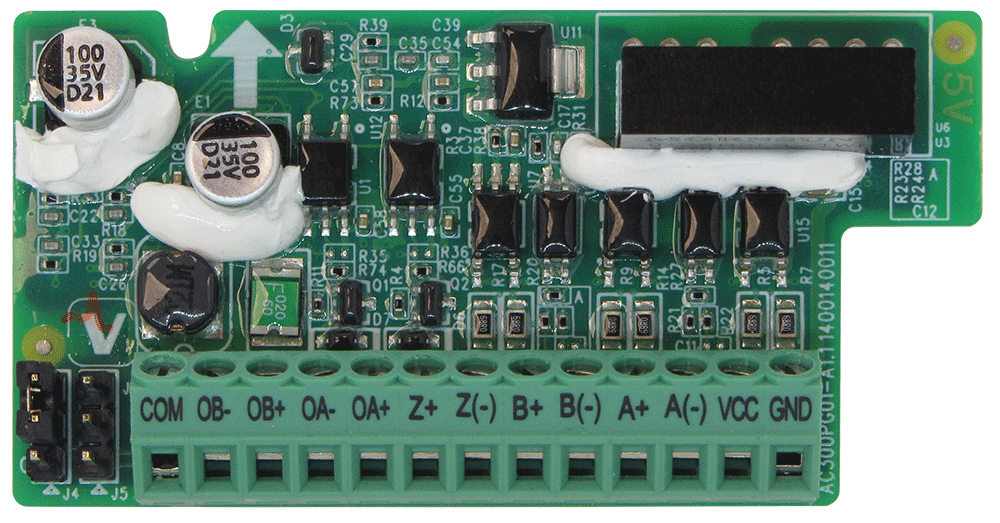 Энкодерная плата ПЭ2 предназначена для подключения инкрементального HTL-энкодера с частотой дифференциального сигнала до 500 кГц. Имеет встроенный источник питания 12 В Плата предназначена для работы с ПЧВ3 [M01].