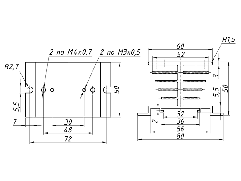 Стоит отметить, что эффективность охлаждения радиатором зависит от его конструкции, температуры и скорости движения воздушного потока. Рекомендуем выбирать радиатор с запасом по мощности, т.к. не существует однозначного соответствия мощности реле и типа радиатора, и/или усиливать теплоотвод с помощью вентилятора обдува.