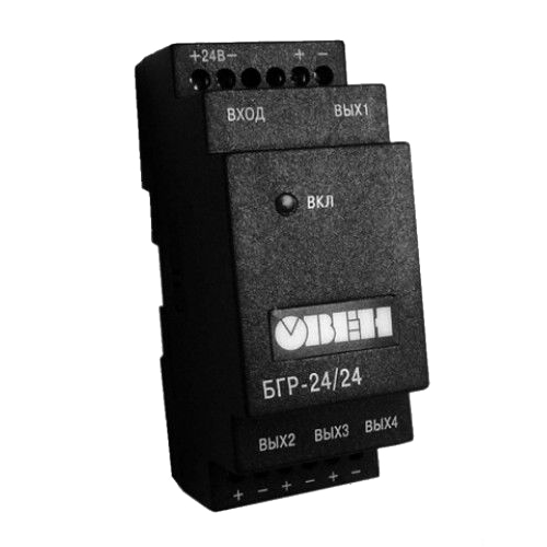 Блок гальванической развязки - БГР2(4)-24/24 - предназначен для питания оборудования нестабилизированным напряжением постоянного тока 24 В. БГР представлен в четырехканальном и двухканальном исполнениях и в зависимости от этого формирует 4 или 2 изолированных друг от друга выходных напряжения 24 В с нагрузочной способностью выходов не более 40 мА.
