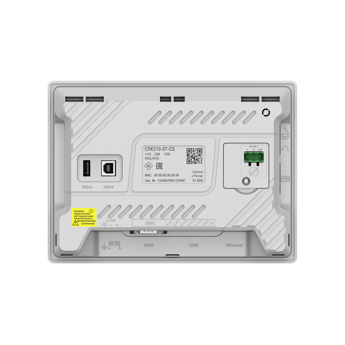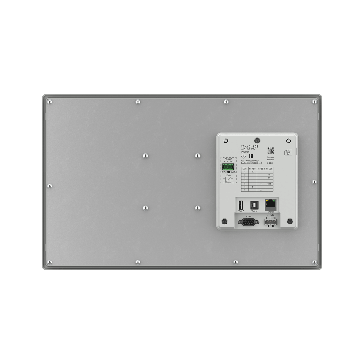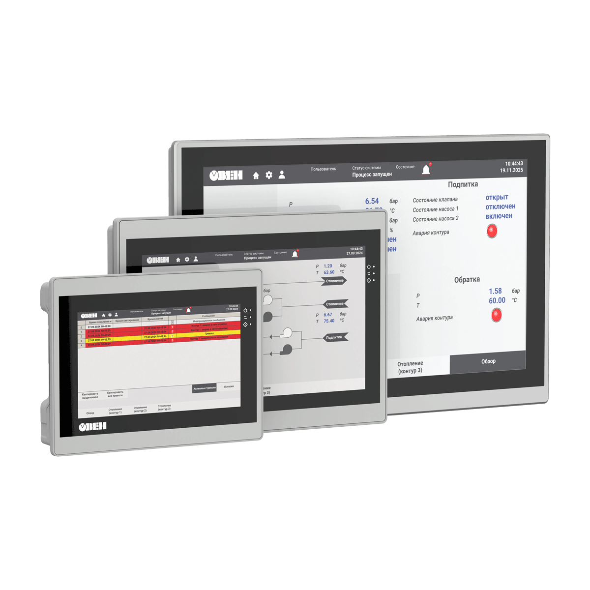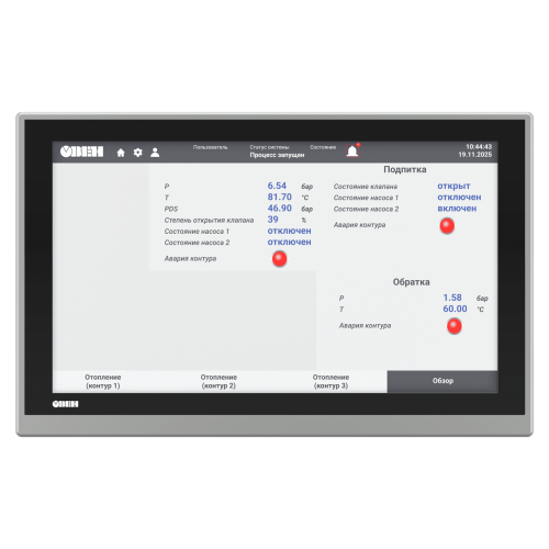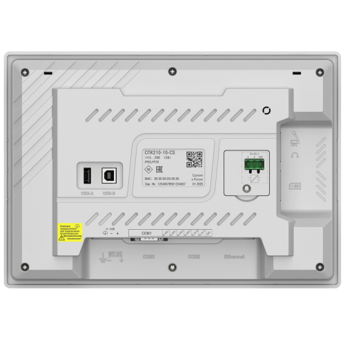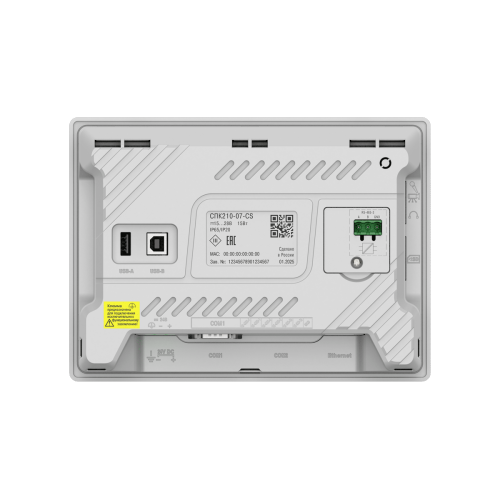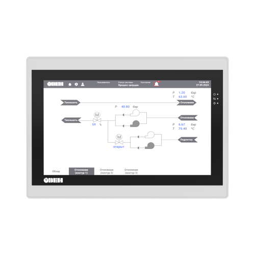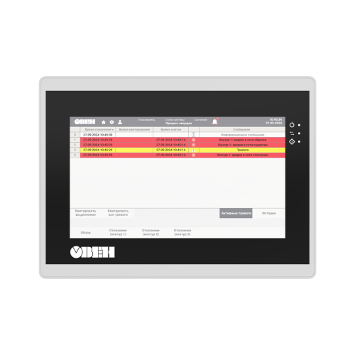 | Процессор | 4х Cortex-A35 | | Частота | 1200 МГц | | Объем ПЗУ | 4 Гб (eMMC) | | Объем ОЗУ | 512 Мб (DDR3) | | Объем Retain-переменных | 64 Кб (MRAM) | | Минимальное время выполнения одного цикла программы | 10 мс | | Часы реального времени (RTC) | Есть1) | | Звук | Пьезоизлучатель, с возможностью управления из программы | | Тип дисплея | TFT LCD, резистивный | | Тип подсветки | LED (светодиодная подсветка)2) | | Количество цветов | 16 млн | 16 млн | 262 тыс. | | Диагональ | 7,0 дюймов | 10,2 дюйма | 15,6 дюйма | | Разрешение | 800×480 пикселей | 1024×600 пикселей | 1920×1080 пикселей | | Размер пикселя (ширина×высота) | 0,1926×0,1790 мм | 0,2775×0,2760 мм | 0,17925×0,17925 мм | | Рабочая зона дисплея (ширина×высота) | 154,08×85,92 мм | 222,00×132,48 мм | 344,16×193,59 мм | | Яркость | 300 кд/м2 | 350 кд/м2 | 250 кд/м2 | | Контрастность | 500:1 | 800:1 | | Угол обзора слева/справа/сверху/снизу | 80/80/60/80° | 65/65/45/65° | 85/85/85/85° | | Время наработки на отказ подсветки, не менее | 60 000 часов при температуре +25 °C | | COM-порты | 3 × RS-485, 1 × RS-232; на портах RS-485-1, RS-485-2, RS-485-3 имеются подтягивающие резисторы. Сопротивление резисторов соответственно равно 1 кОм, 1 кОм, 10 кОм; тип разъема DB9M (RS-485-1, RS-485-2, RS-232), клеммы (RS-485-3); интерфейс RS-485-3 имеет индивидуальную гальваническую изоляцию 1000 В относительно всех остальных узлов прибора; сигналы RS-232 – Rx, Tx, GND; сигналы RS-485 – A, B; все интерфейсы являются независимыми; поддерживаемые протоколы: Modbus RTU (Master/Slave), Modbus ASCII (Master/Slave), ОВЕН (Master), протоколы тепло/электросчетчиков3); в комплект поставки входит адаптер СПК210, представляющий собой переходник с разъемов DB9 на быстрозажимные пружинные клеммы. Адаптер и интерфейс RS-485-3 имеют встроенные согласующие резисторы (120 Ом), подключаемые с помощью DIP-переключателей. | | Ethernet | 1 × Ethernet 10/100 Мбит/c (RJ45) – для подключения устройств, для загрузки проектов и web-визуализации; поддерживаемые протоколы: Modbus TCP (Master/Slave), OPC UA (Server), MQTT (Client/Broker), SNMP (Manager/Agent)3 | | USB Device | 1 × USB 2.0 B (для загрузки проектов и подключения в режиме Mass Storage Device)4) | | USB Host5) | 1 × USB 2.0 A (для архивов, импорта файлов рецептов, загрузки проектов, максимальный ток потребления подключаемых устройств – 500 мА) | | SD Card6) | Для архивов, импорта файлов рецептов, загрузки проектов | | Тип питающего напряжения | Постоянное | | Диапазон питающего напряжения | 15…28 В | | Номинальное напряжение питания | 24 В | | Максимальный потребляемый ток в момент запуска, не более | 14 А в течение 200 мкс | | Максимальная потребляемая мощность в установившемся режиме, не более8) | 15 Вт | 20 Вт | | Сопротивление изоляции | 10 МОм при 500 В постоянного тока | | Напряжение изоляции | 500 В переменного тока (не более минуты) | | Версия ОС | Linux 4.19.232-rt104 | | Среда программирования | CODESYS V3.5 SP17 Patch 3 | | Конструктивное исполнение | Для щитового крепления | | Тип вентиляции | Естественная вентиляция | | Виброустойчивость | В диапазоне 10…25 Гц в направлении X, Y, Z с ускорением до 2G в течение 30 минут | | Габаритные размеры | (201,2×147,2×39) ± 1 мм | (272×191×41,5) ± 1 мм | (403 × 253× 35,2) ± 1 мм | | Установочные размеры | 192×138 мм | 260×179 мм | 394 × 244 мм | | Степень защиты корпуса по ГОСТ 14524: | | - со стороны лицевой панели | IP65 | | - со стороны задней панели | IP20 | | Масса брутто, не более | 1 кг | 1,6 кг | 2,8 кг | | Средний срок службы, не менее | 10 лет | | Средняя наработка на отказ, не менее | 60 000 ч | | Рабочая температура | -10…+55 °С | 0…+50 °С | | Рабочая влажность | 30…80 % (без конденсации) | |