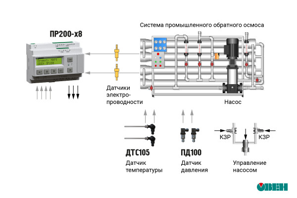 Модификация ПР200-х8 – специализированное исполнение программируемого реле ПР200 для контроля качества воды. Прибор может измерять и контролировать электропроводность (EC), солесодержание (TDS) и температуру воды в 4 точках. Основным применением являются системы обратного осмоса и контроль уровня жидкости.