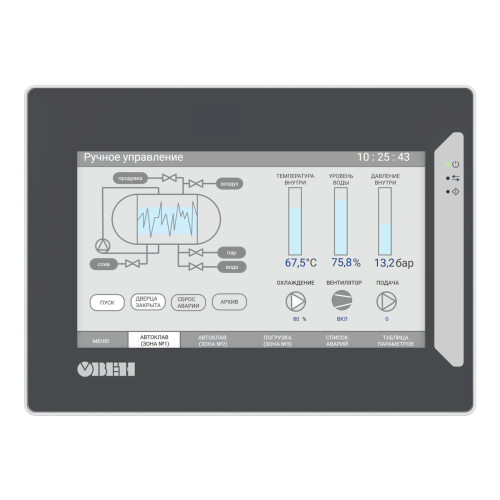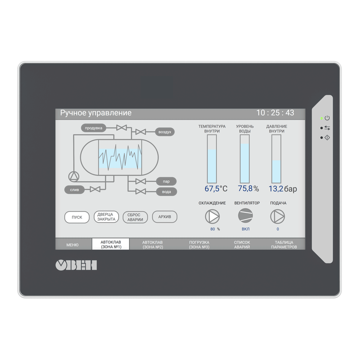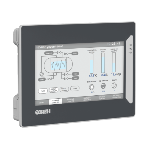 ОВЕН СПР400 - сенсорное панельное программируемое реле, объединяющее функции контроллера и панели оператора (HMI) в одном устройстве. Это позволяет создавать распределенные системы автоматизации, где каждый узел может выполнять локальные задачи контроллера и отображать/управлять процессами через встроенный HMI.