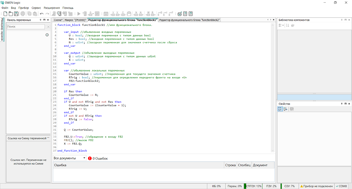 Пользовательские функции и функциональные блоки на текстовом языке ST с поддержкой: