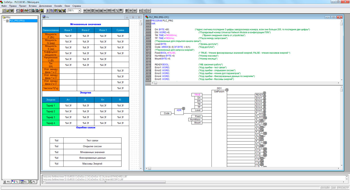 Также в состав СoDeSys входит редактор визуализации, конфигураторы протоколов обмена и средства отладки.